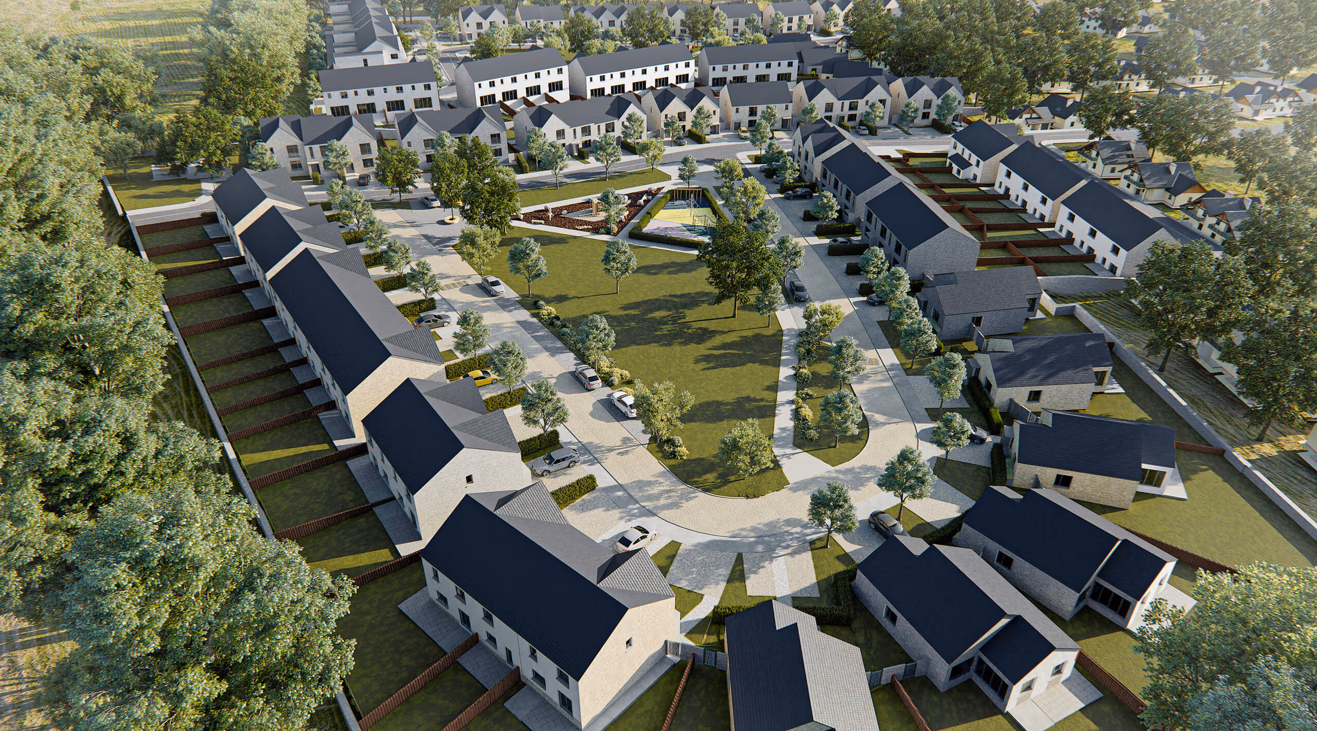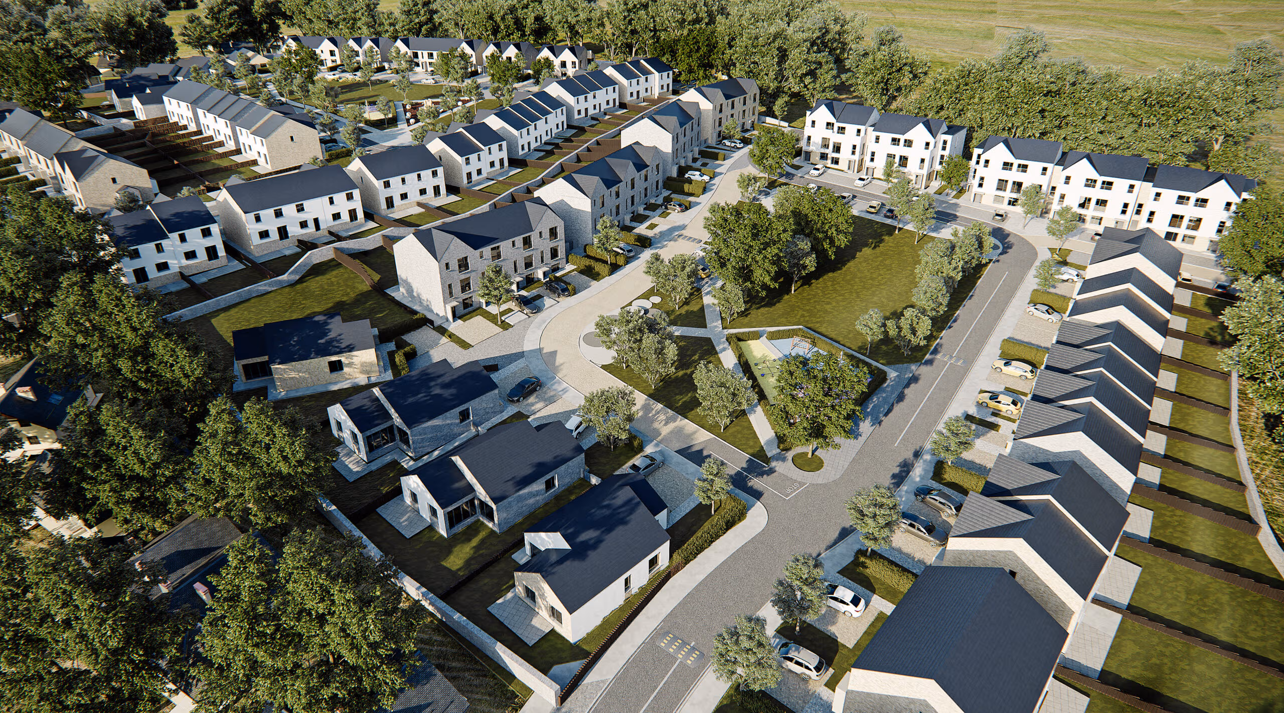 This residential development comprises the delivery of 183 units comprising houses, apartments and duplexes across a green field site.